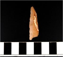 | Description / विवरण | A blade of chert stone, having ridges on the surface, sharp cutting edges, pointed at one end. |