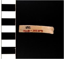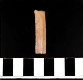 | Description / विवरण | A blade of chert stone having double ridge on the surface, trapezoid cross-section, sharp cutting edges, flat at the end, rectangular in shape. |
