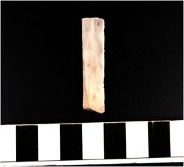 | Description / विवरण | A blade of chert stone having multiple ridges, triangular section, sharp cutting edges, rectangular in shape. |
