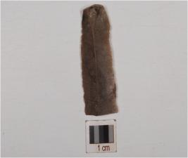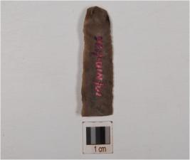 | Description / विवरण | Fragment of blade made on chert, prepared platform, promint bulb on ventral side, mid-ridge on dorsal side, triangular in cross-section and use-marks along the cutting edges. |