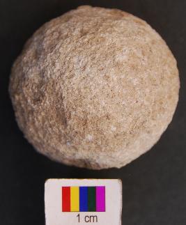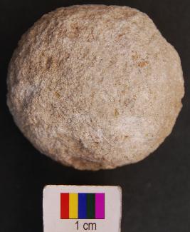 | Description / विवरण | It is a stone ball with rough surface and batter marks on the surface. |