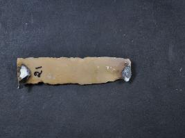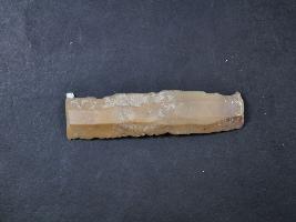 | Description / विवरण | It is a chert blade made of stone and parallel in shape.It has both sides are fine edge.It may be used for scraping and rubbing.Its color is light brown. It has some incised line on its surface. |