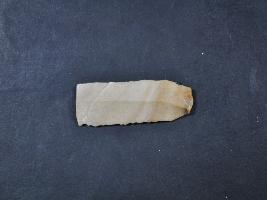 | Description / विवरण | It is a chert blade made of stone and parallel in shape.It has both sides are fine edge.It may be used for scraping and rubbing.Its color is light brown. It has some incised line on its surface. |