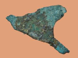 | Description / विवरण | It is a arrow head made of copper and tringular in shape.It may be used for hunting and other defense mode.The object loosing its natural color.Deposition of soft patina. |