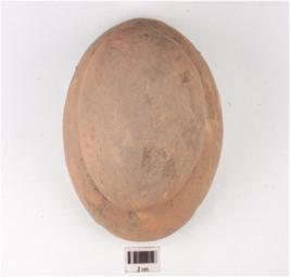 | Description / विवरण | A handmade terracotta dabber, convex circular top, convex circular bottom, surface treated with red slip, hour glass like vertical section. |