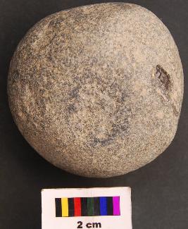| Description / विवरण | It is a spherical stone ball with batter mark. It is a hammer. |