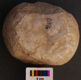 | Description / विवरण | It is a hammer with circular body and pecking marks on the surface. It is partially broken. |