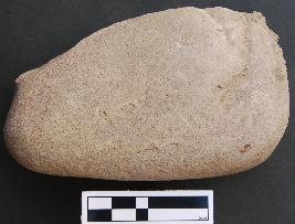 | Description / विवरण | It is a muller stone the surface of which is polished and partially broken. |