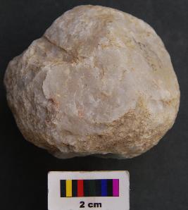 | Description / विवरण | It is a hammer stone the surface of which has pecking marks and has circular body. Its surface is partially broken. |