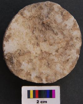 | Description / विवरण | It is a hammer stone the surface of which has pecking marks and has circular body. Its half portion is missing. |