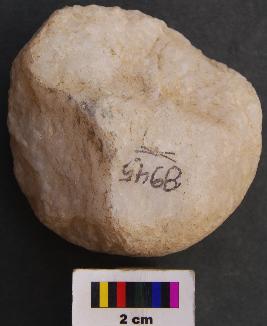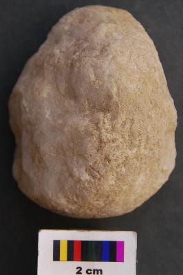 | Description / विवरण | It is fragment of a hammer stone the surface of which has pecking marks and has circular body. |