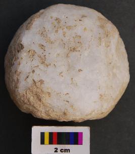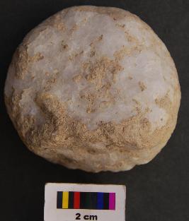 | Description / विवरण | It is fragment of a hammer with circular body and pecking marks on the surface. |