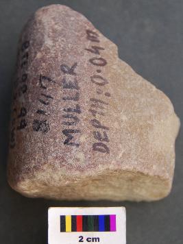 | Description / विवरण | It is fragment of a muller with semi curcular polished surface. |