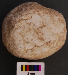 | Description / विवरण | It is fragment of a hammer stone with round body. It has pecking marks on the surface. |