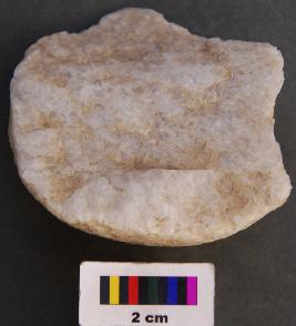 | Description / विवरण | It is fragment of a hammer stone with round body. It has pecking marks on the surface. |