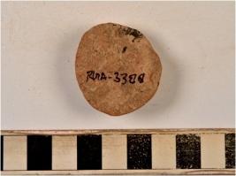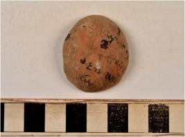 | Description / विवरण | A fragment of a terracotta ball smooth surface half broken. |