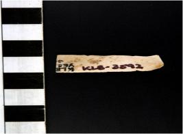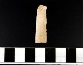 | Description / विवरण | A blade of chert stone having double ridge on the surface, trapezoid cross-section, sharp cutting edges, flat at one end and broken at one end rectangular in shape. |