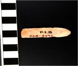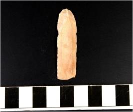 | Description / विवरण | A blade of chert stone having double ridge on the surface, trapezoid cross section, bulb on the ventral sides, sharp cutting edges, round at one end rectangular in shape. |