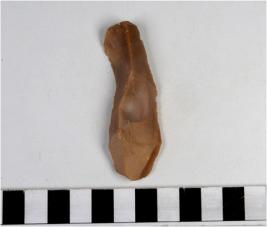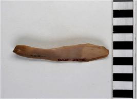 | Description / विवरण | A blade of chert stone having ridge on the surface, triangular section, sharp edges. |