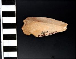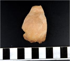 | Description / विवरण | A flake of chert stone having ridge on the surface, triangular cross section, sharp edges, triangular in shape. |