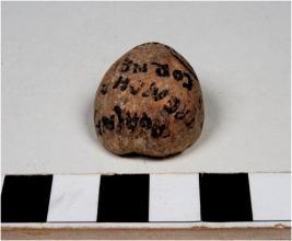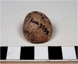 | Description / विवरण | A fragment of a terracotta sling ball of rough surface. |