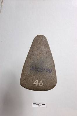 | Description / विवरण | Pear shape with expanded working edge and narrowed butt end area. Cutting edge is straight and butt end is round shape. Surface is moderately smooth. |