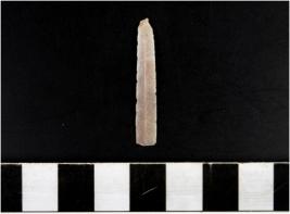 | Description / विवरण | A chert blade with single ridge,dorsal side, triangular section and sharp cutting edges. |