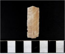 | Description / विवरण | A blade of chert having double ridges, trapezoid cross-section, sharp cutting edges. |