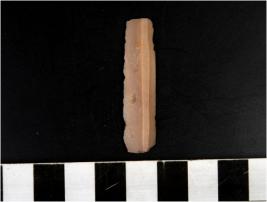 | Description / विवरण | A blade of chert stone double ridge, trapezoid cross section, sharp cutting edges. |