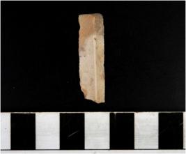 | Description / विवरण | A blade of chert stone having single ridge, triangular in section, sharp cutting edges. |