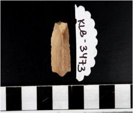 | Description / विवरण | A blade of chert having single ridge, triangular in section, sharp cutting edges. |