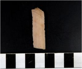| Description / विवरण | A blade of chert with double ridge, trapezoid cross-section, sharp cutting edges. |