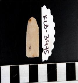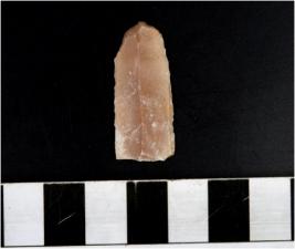 | Description / विवरण | A chert blade with single ridge, triangular in section, sharp cutting edges. |
