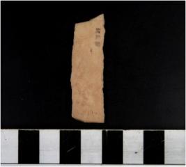 | Description / विवरण | A chert blade with double ridge on dorsal side, trapezoid cross-section and sharp cutting edge. |