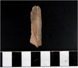 | Description / विवरण | A chert blade with ridge on dorsal side triangular section and sharp cutting edges. |