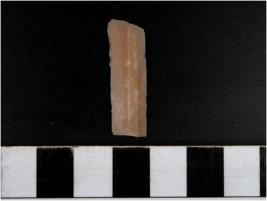 | Description / विवरण | A chert blade with double ridge on dorsal side, trapezoid cross section and blunt edges. |