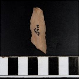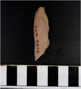 | Description / विवरण | A chert blade with single ridge on dorsal side, bulb on ventral side and sharp cutting edge. |
