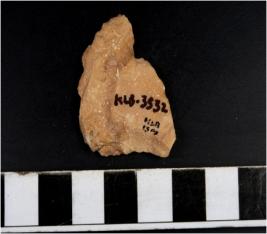 | Description / विवरण | A chert side scraper with irregular cutting edge. |