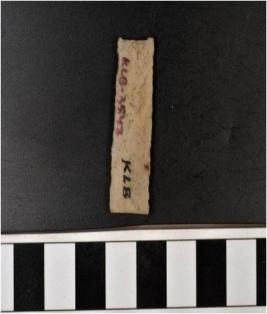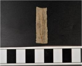 | Description / विवरण | A chert blade with single ridge on dorsal side, triangular cross section, sharp cutting edges and both ends broken. |