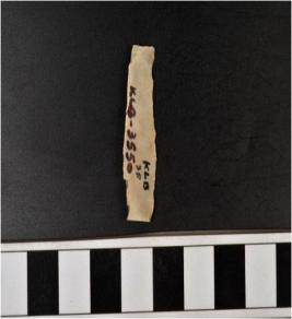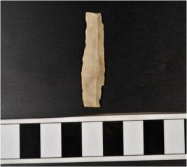| Description / विवरण | A chert blade with single ridge on dorsal side, triangular cross section, and sharp cutting edges. |