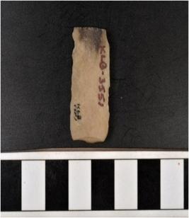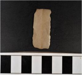 | Description / विवरण | A chert blade with single ridge on dorsal side, triangular cross section, and sharp cutting edges. |