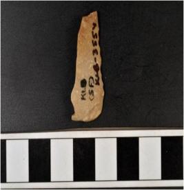 | Description / विवरण | A chert blade with single ridge on dorsal side, triangular cross section, sharp cutting edges. |