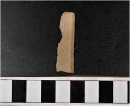 | Description / विवरण | A chert blade with double ridge on dorsal side, trapezoid cross section and sharp cutting edges. |