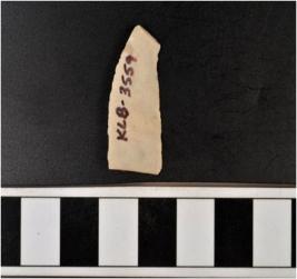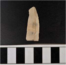 | Description / विवरण | A chert blade with single ridge on dorsal side, triangular cross section and sharp cutting edges. |