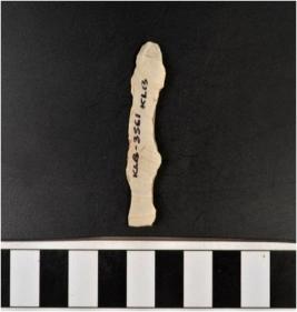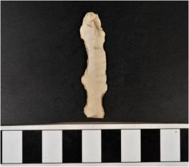 | Description / विवरण | A chert blade with single ridge on dorsal side, triangular cross section, balb on ventral side and irregular cutting edges. |