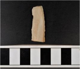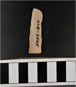 | Description / विवरण | A chert blade with double ridge on dorsal side, trapezoid cross section and sharp working edge. |