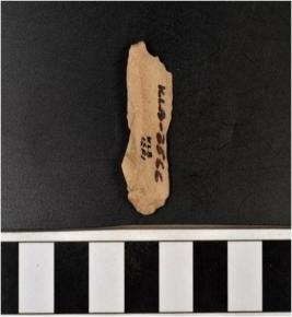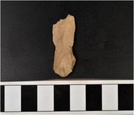 | Description / विवरण | A chert blade with single ridge on dorsal side, triangular cross section and sharp cutting edges. |