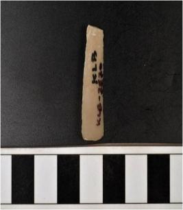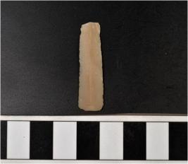 | Description / विवरण | A chert blade with single ridge on dorsal side, triangular cross section and sharp cutting edge. |