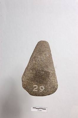| Description / विवरण | pear shape object with round cutting edge and pointed butt end. Surface is coarse. |