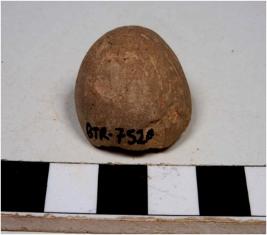 | Description / विवरण | A fragment of a terracotta ball of rough surface. |